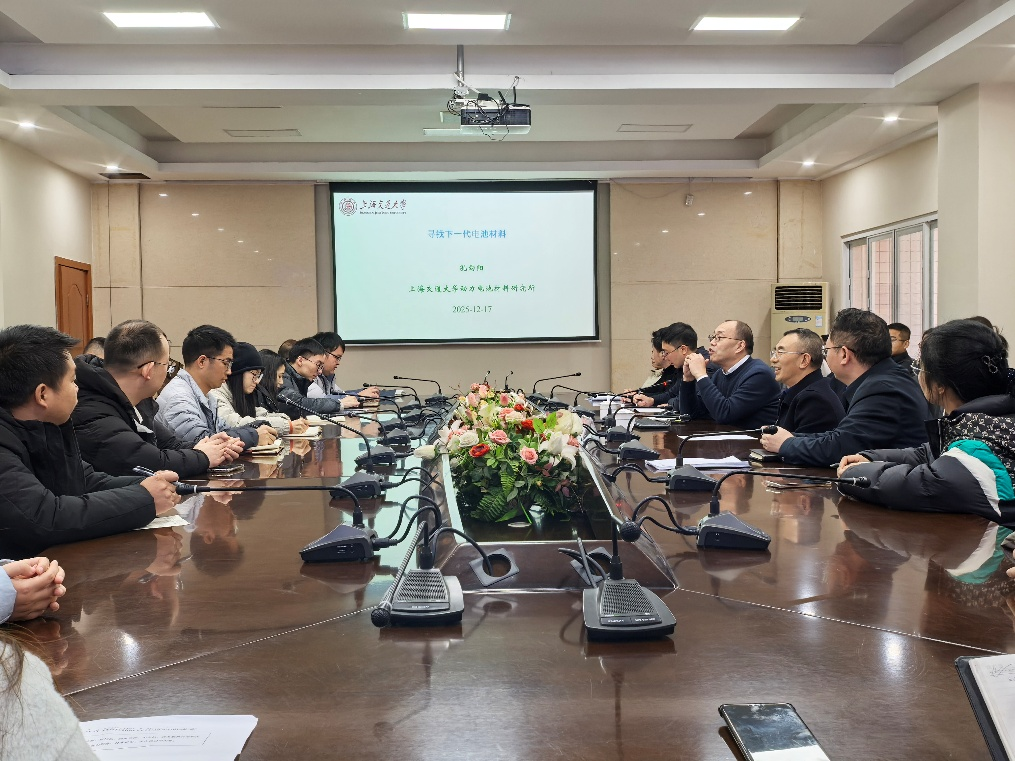 孔向阳教授从电池发展历程切入,强调了电池技术在现代社会中的广泛应用及其根本驱动力在于创新。他系统阐述了电池电极中离子扩散与电子转移的关键机制,深入解析了锂电池能量密度与正极材料体系的内在关联,并从电池容量与电压两个维度,介绍了该领域的重要研究进展。针对超高能量密度富锂锰基电池的应用需求及其典型固溶体结构,孔教授指出,科研工作应紧密结合实际应用场景,注重通过国家大科学装置等手段深入分析材料微观结构,从而推动电池性能的持续优化与创新突破。讲座中,学院老师与孔教授进行了热烈交流互动。