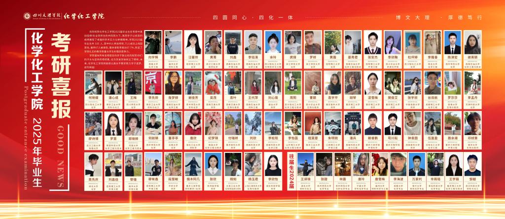 全院教师指导在校生参加学科竞赛成绩突出,全年累计获奖超100项。其中包括“中国国际大学生创新大赛”“全国大学生化工设计竞赛”等国家级奖项6项,“第四届四川省大学生分析检测实验竞赛”“四川省大学生材料设计大赛”“四川省大学生化学实验竞赛”“四川省大学生环保科普创意大赛”等省级奖项90余项。获奖学生超过300人次,竞赛育人成效显著,人才培养质量持续提升。