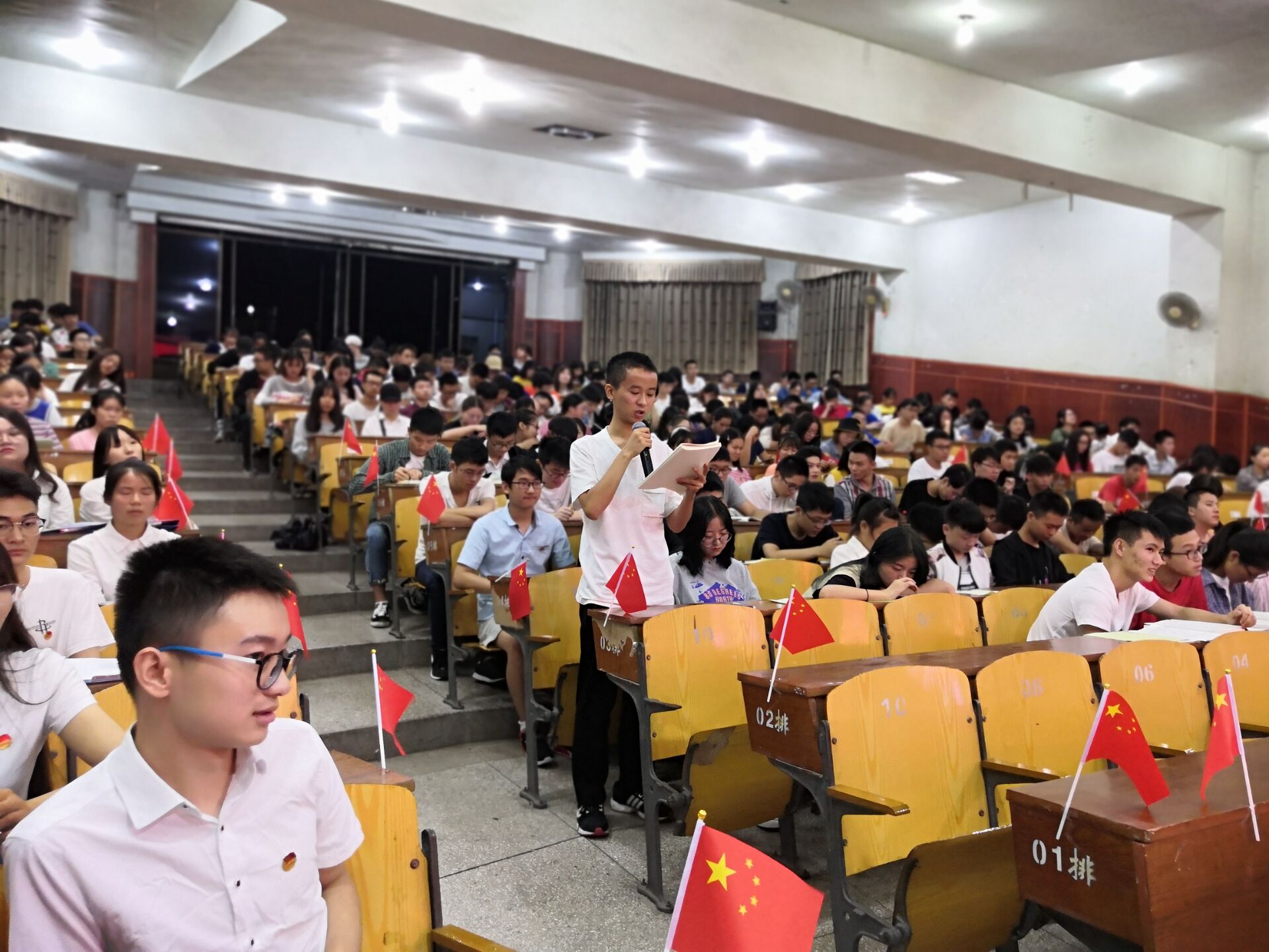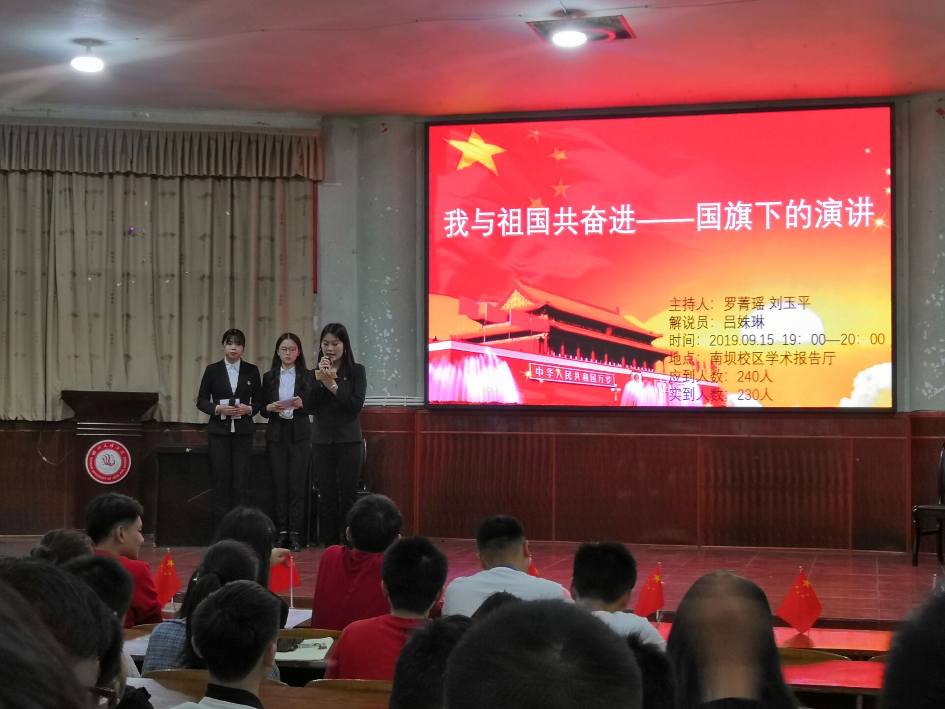 寒秋来临,气温骤降,为迎接中华人民共和国成立70周年和回顾在新中国成立以后中国发生的变化,bwin必赢于2018年9月16日晚上7:00在学术报告厅举办了“我与祖国共奋进——国旗下的演讲”特别主题团日活动, 2018级200余名团员青年参加活动。