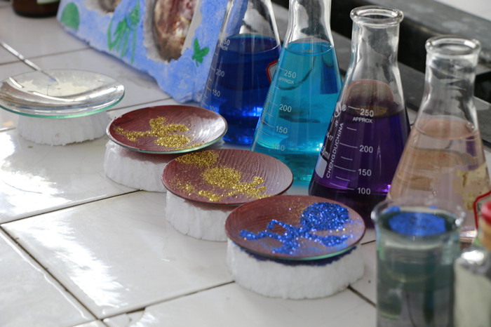 科博会项目内容囊括了观赏性、实用性、操作性及人工智能四大类,其中,氨基酸洗面奶、神奇的变色唇膏、缤纷梦幻香水都是同学们从日常生活中提取素材,从女性角度出发,通过实际需要构思创新的项目,体现出了当代社会对女性的关注和尊重;水果保鲜剂、纯植物无添加不伤发染发膏的制作是新时代人们对绿色、健康生活向往的必然产物;从海藻中提取海藻油并制取微海藻生物柴油、用废旧易拉罐制备明矾等项目,体现了变废为宝、循环使用,实现了固废资源化,同时这也是我国可持续发展的重要途径;智能清洁机器人、多功能农用无人机体现出智能科技的魅力,表现出同学们扎实的理论基础和较强的动手操作能力;晶簇玫瑰、落日余晖下的魔法森林等产品,通过颜色、状态的斑斓变化呈现出一个又一个精彩缤纷的化学世界,具有独特的观赏价值。