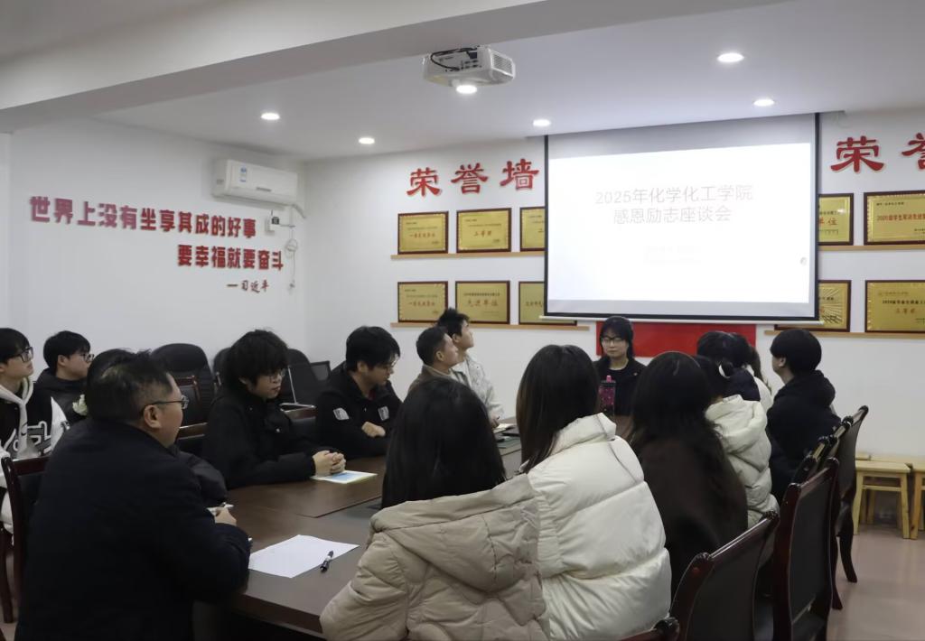 座谈会伊始,罗云通过播放感恩主题短片、解读诚信经典故事,生动阐述了“感恩为立身之本,诚信乃成事之基”的内涵。党委书记向文军结合化学学科严谨求实的专业特质,强调了科研诚信与学术规范的重要性,并勉励同学们在国家资助政策的支持下,应永葆感恩之心,树立积极健康的人生观、价值观和消费观。在随后的感恩故事分享环节,同学们踊跃发言,有的讲述家人无私的关怀,有的感念师长的悉心教导,有的谈及同窗之间的真诚相助,真挚的情感引起了全场共鸣。诚信讨论环节中,大家围绕学术不端的危害、校园诚信行为规范等话题展开了热烈交流。