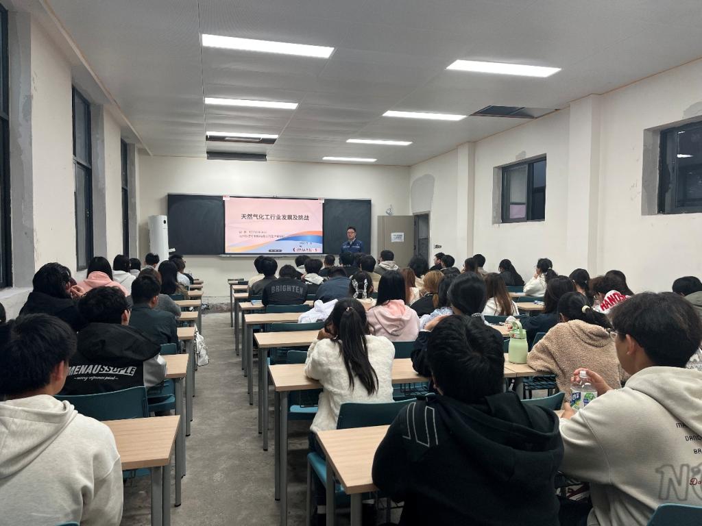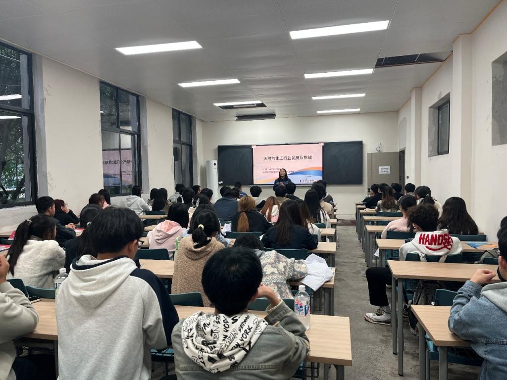 徐鹏经理以“天然气化工行业发展及挑战”为题,深入阐释了天然气化工在清洁能源领域的关键地位与广阔前景。他结合企业实际,分析了该领域的最新发展趋势、技术创新热点及面临的市场挑战,为同学们打开了瞭望行业前沿的窗口。