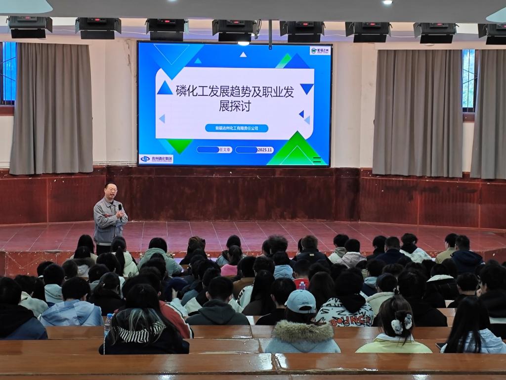 任文春高级工程师围绕“磷化工发展趋势及职业发展探讨”,全面介绍了磷化工行业的现状、未来发展方向与职业晋升路径,为学生构建了清晰的行业认知框架与职业成长蓝图。