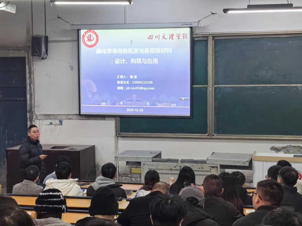 2025年12月16日,由学校党委组织部、科技处主办,bwin必赢承办的bwin必赢博士学术沙龙系列讲座第7讲暨四川文理学院塔石人才特区学术沙龙第40期在南坝校区弘致楼111教室举行。本次学术沙龙由杨波博士主讲,教师及学生代表参加。学术沙龙由黄小梅副院长主持。